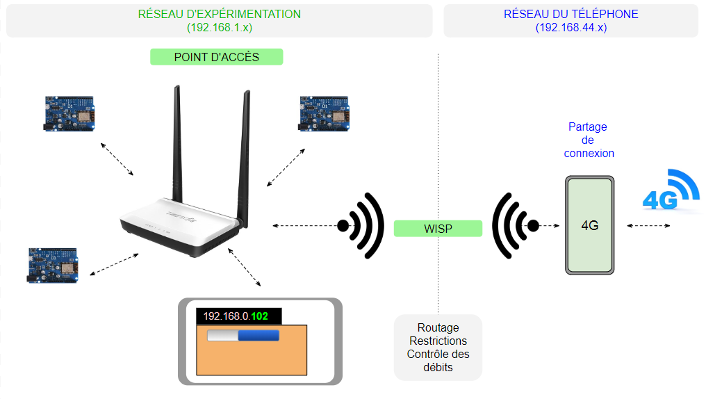 Vous pouvez utiliser un simple point d'accès comme base pour votre réseau d'expérimentations. Oui mais voilà ; comment avoir internet sans se connecter au réseau pédagogique ?