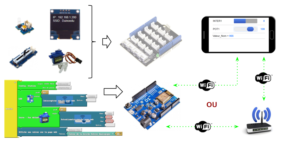 Découvrez une solution vraiment simple et radicale pour aborder le Wifi en collège. Arrêtez de vous casser la tête et utilisez la nouvelle carte D1 et la dernière version d'Arduino augmenté (avec Ardublock ESP !) : vous gardez votre matériel Grove habituel, vous déplacez des blocs graphiques comme d'habitude et vous avez vos prototypes Wifi opérationnels en 5mn ! Vous n'y croyez pas ? Alors regardez ça !